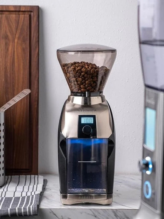Baratza Virtuoso+ Precision Burr Coffee Grinder – 230V | Black & Silver | Café-Quality at Home